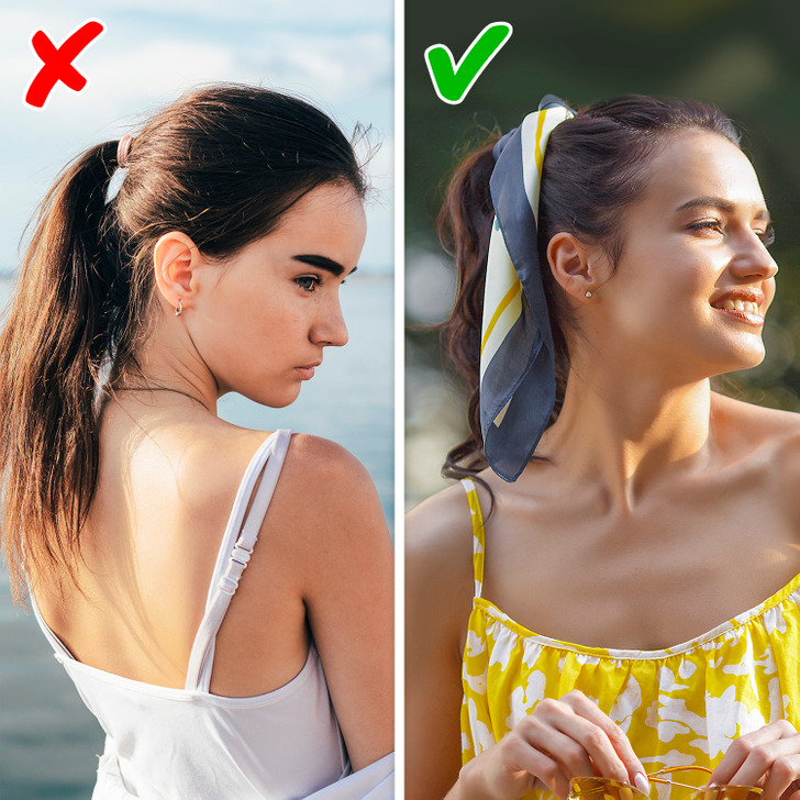 A veces basta con cambiar la raya del cabello, hacer una trenza inusual o poner un par de horquillas y el look lucirá de forma diferente. Por cierto, ahora los pañuelos para el cabello están de moda, y se pueden atar de muchas formas distintas, lo que te hará lucir de otra manera.